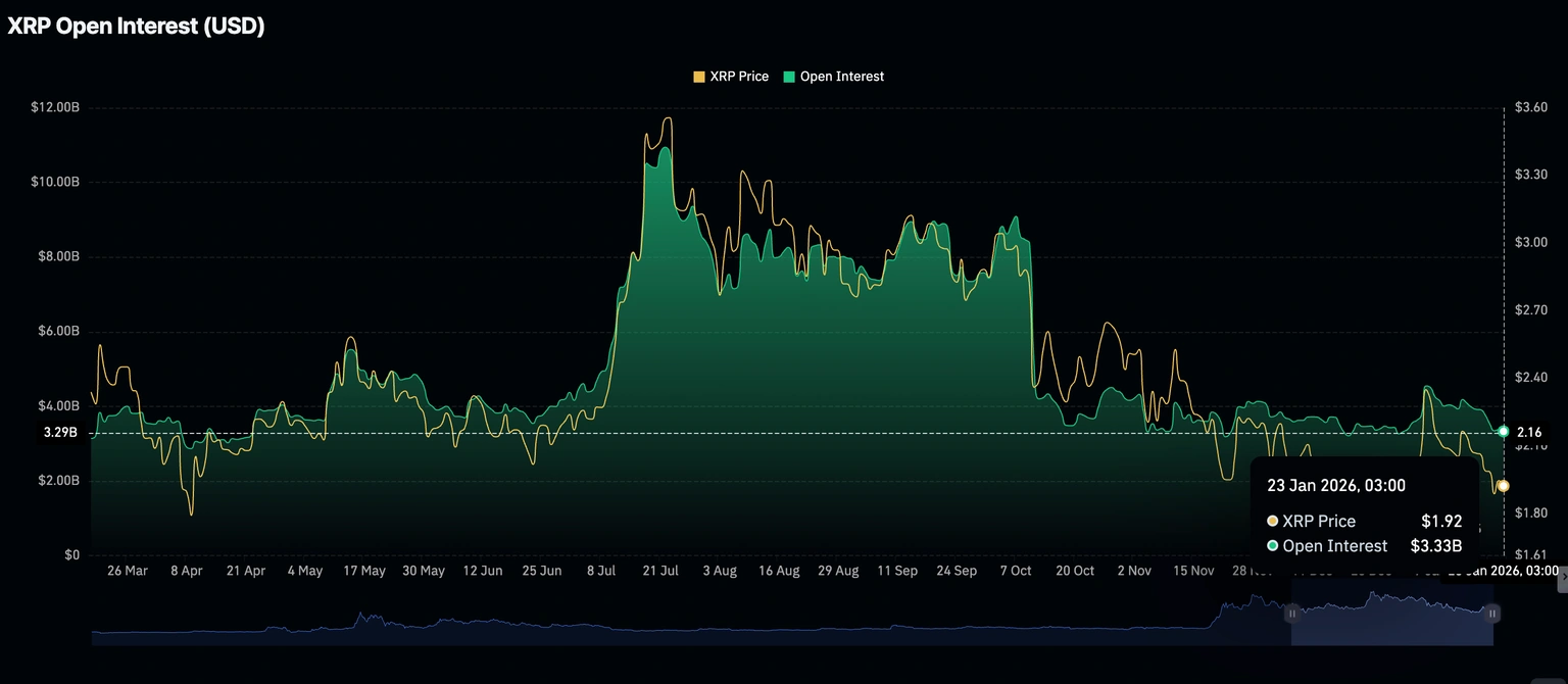 Ripple (XRP) торгуется под давлением, находясь выше ближайшего уровня поддержки на $1,90 на момент написания в пятницу. Несмотря на умеренные притоки в спотовые биржевые фонды (ETF), XRP снизился второй день подряд, отражая слабый розничный спрос и постоянное давление со стороны продавцов.