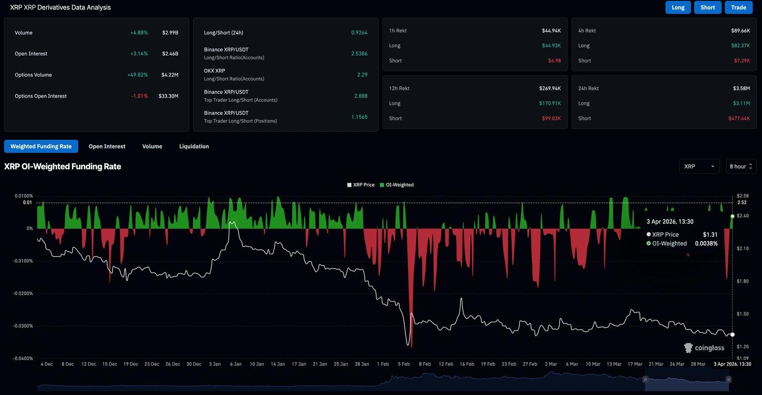 Ripple (XRP) торгуется около $1,30 на момент публикации в пятницу, продолжая снижение на 2% с четверга. Ончейн-данные показывают стабильный рост запасов XRP у крупных держателей кошельков, обычно называемых китами, в то время как ETF, ориентированные на XRP, зафиксировали первый приток в размере $64 610 в апреле в четверг после оттока $31,16 млн в марте.