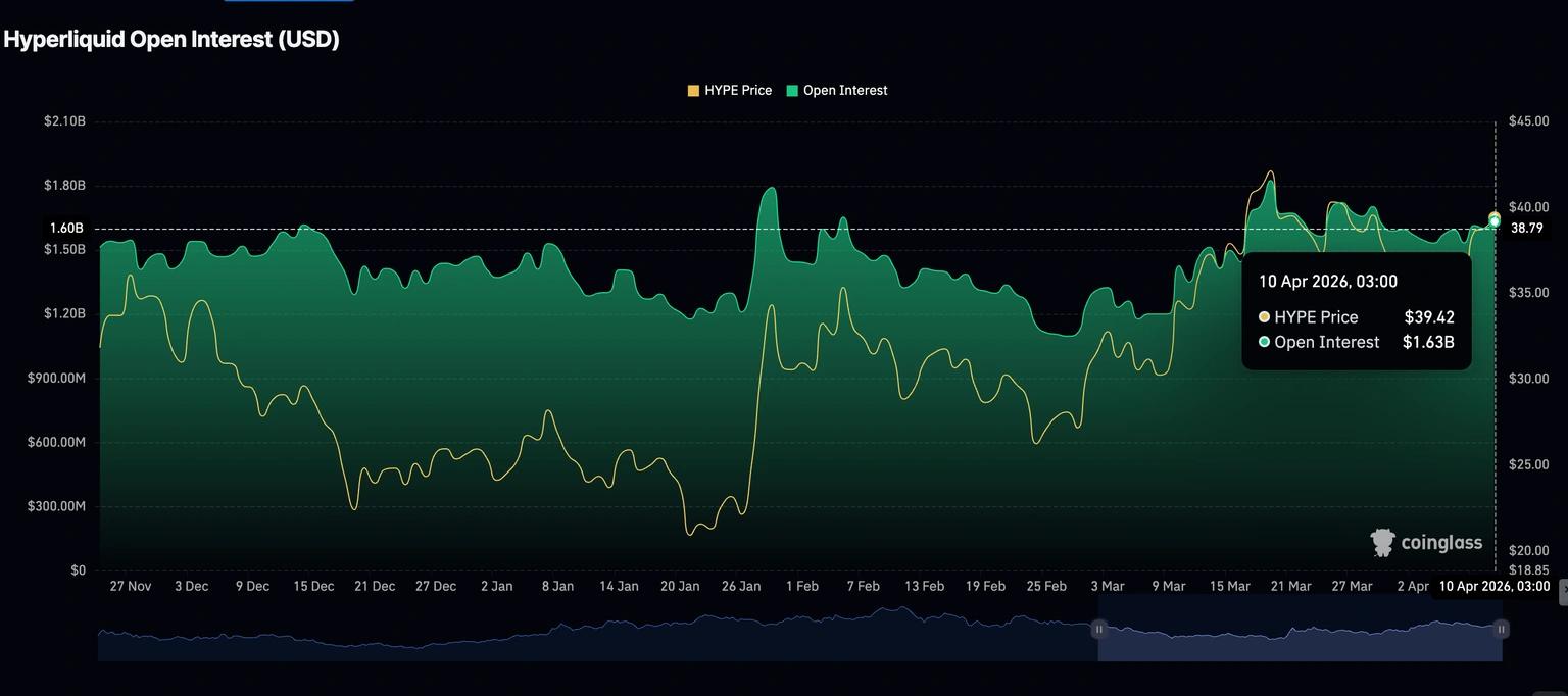 Hyperliquid (HYPE) поднимается выше $41,00 на момент написания статьи в пятницу, поддерживаемый улучшением настроений вокруг нативного токена децентрализованной биржи (DEX). Розничный спрос остается стабильным на фоне бычьего прогноза по HYPE, при этом открытый интерес (OI) по фьючерсам вырос до $1,63 млрд в пятницу с $1,60 млрд на предыдущий день.