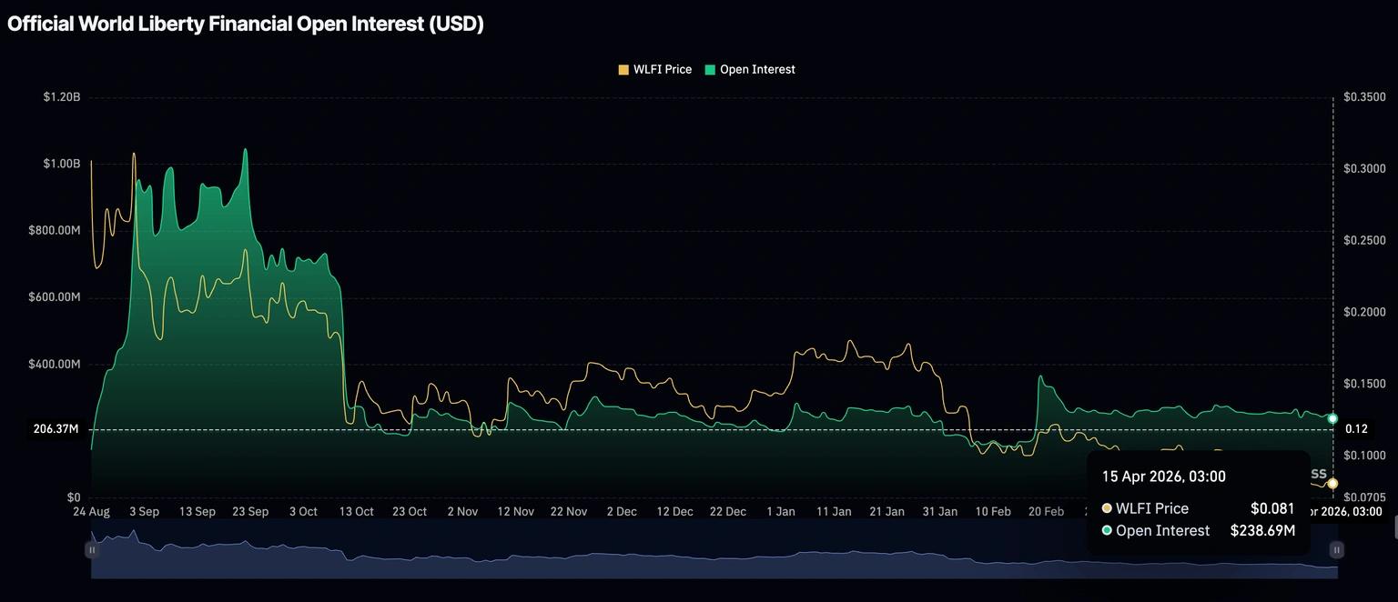 Токен World Liberty Financial (WLFI) торгуется около $0,08 на момент написания статьи в среду, что соответствует относительно подавленным настроениям на крипторынке. Токен децентрализованных финансов (DeFi) торгуется в рамках более широкого нисходящего тренда с рекордного максимума $0,33 в сентябре. Слабая техническая картина часто сдерживает попытки восстановления, оставляя WLFI уязвимым к общей волатильности крипторынка.