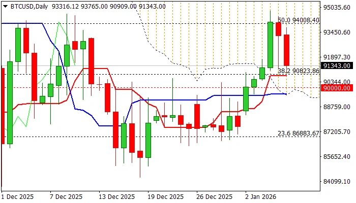 Биткойн остается в красной зоне и держится выше нового трехнедельного минимума в понедельник, ослабленный растущей неопределенностью по поводу тарифов в США.