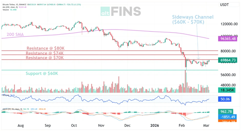 На уровне $71 800 и с ростом на 12% за неделю, биткоин противостоит геополитическим встречным ветрам.