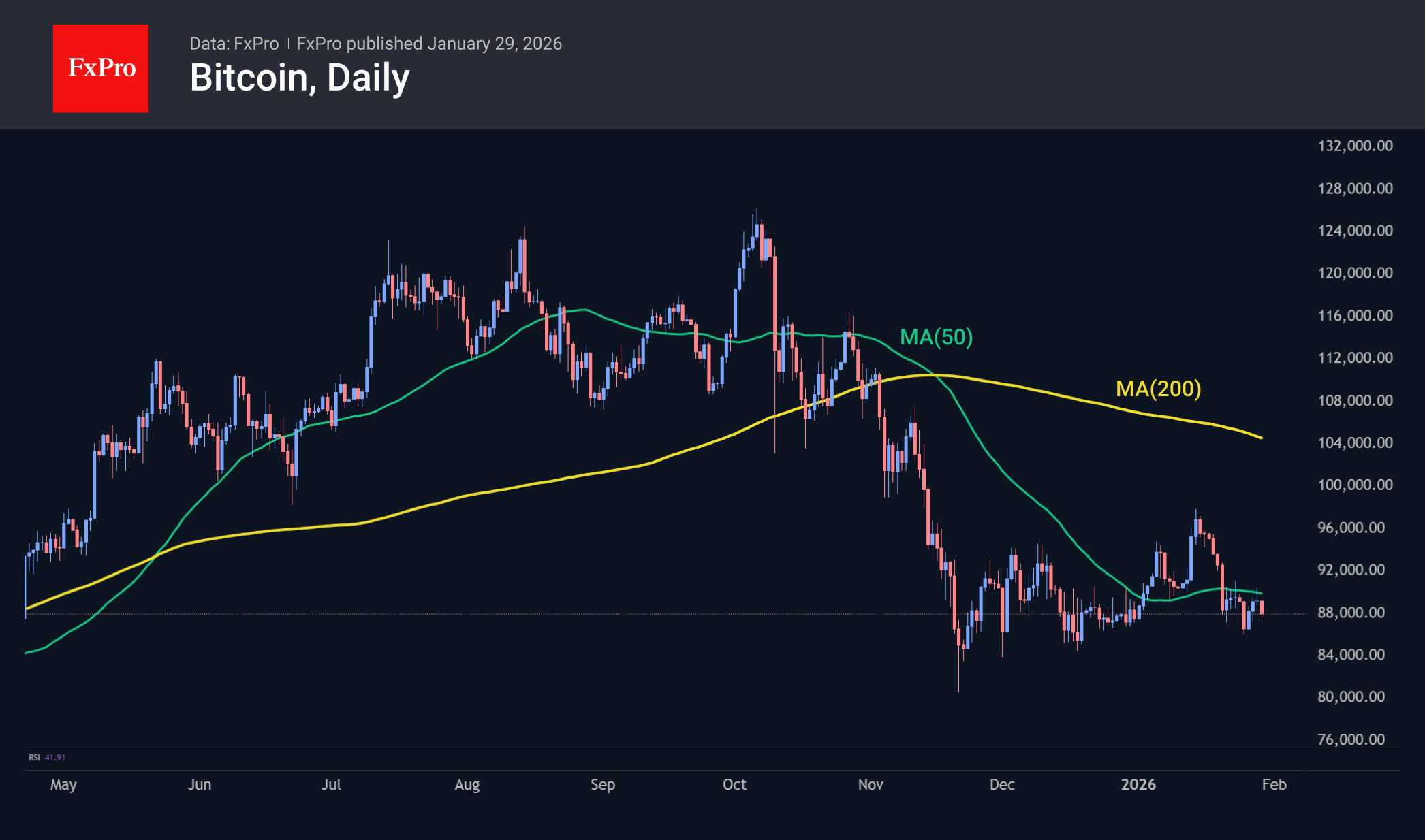 В Биткоине вечером в среду исполнялась очередная порция сделок на продажу на попытках рынка уйти выше $90K, провалив очередную попытку вернуться выше 50-дневной скользящей средней. Эта кривая плавно поворачивается вниз, дополнительно усиливая медвежьи аргументы. С другой стороны, BTC ещё не начал активного снижения после консолидации. Формальным сигналом для старта может стать слом поддержки вблизи $85K. Важный вопрос, если металлы резко развернутся вниз, поможет ли это криптовалютам, вернув интерес к ним, или ещё больше навредит? Мы склоняемся ко второму варианту из-за потенциального делевериджа, опасного для всех рисковых активов на первом этапе. Это состояние цугцванга, когда следующий ход лишь делает ситуацию хуже.