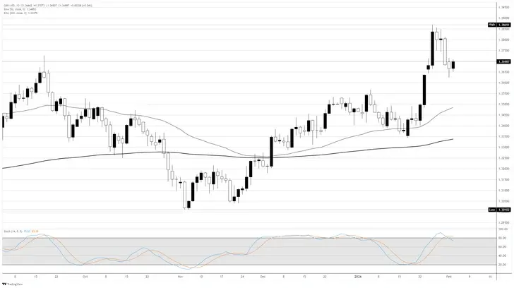 GBP/USD стабилизируется после умеренного роста в предыдущей сессии, торгуясь в районе 1,3700 в азиатские часы в среду. Технический анализ дневного графика указывает на потенциальный медвежий разворот, так как диапазон сужается, что свидетельствует о снижении импульса покупателей в рамках восходящего клина.