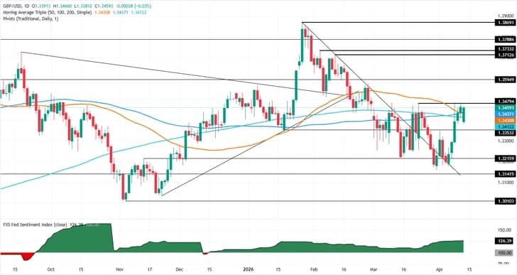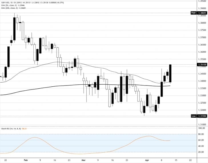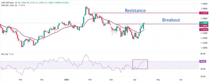 Пара GBP/USD продолжает ралли выше 1,3500 на европейской сессии во вторник. Пара укрепляется на фоне благоприятного настроя рынка к рисковым активам на фоне позитивных комментариев президента США Дональда Трампа и вице-президента Джей Ди Вэнса по переговорам с Ираном о постоянном прекращении огня.