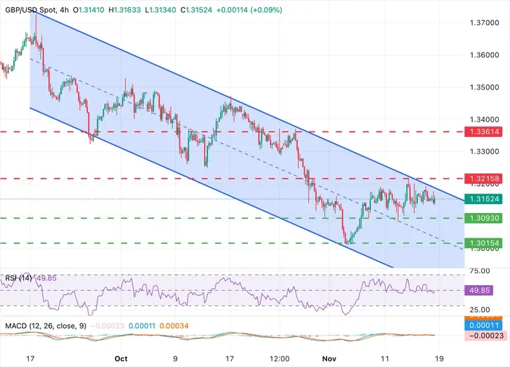 GBP/USD остается под давлением уже четвертую сессию подряд, торгуясь в районе 1,3130 в ходе азиатских торгов в среду. Трейдеры ожидают данных по индексу потребительских цен (CPI), базовому индексу цен производителей (PPI) и индексу розничных цен Великобритании за октябрь, которые будут опубликованы позже в течение дня.