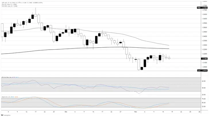 GBP/USD остается в грубой зоне краткосрочной консолидации, с покупками Cable в районе 1,3150. Пара исчерпала свои силы после небольшого отскока от семимесячных минимумов, и фунт стерлингов (GBP) остается практически неизменным в ноябре.