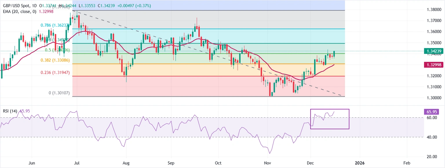 GBP/USD поднимается до свежего двухмесячного максимума выше 1.3400