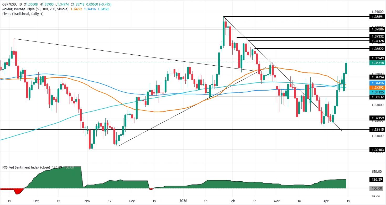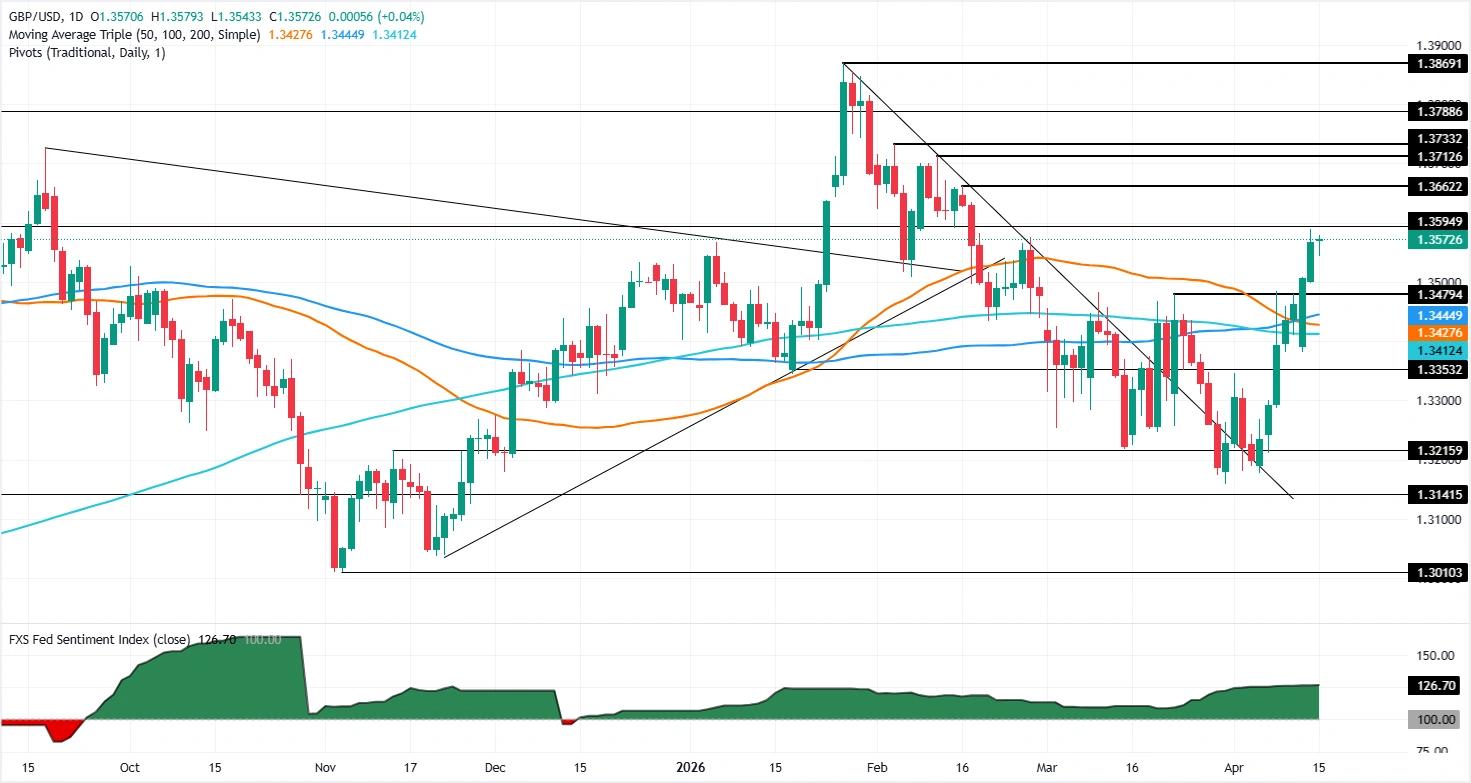 GBP/USD удерживается около 1,3570 на фоне ослабления оптимизма по переговорам с Ираном