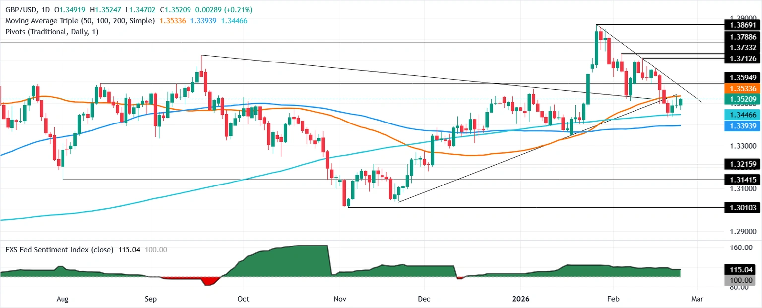 GBP/USD поднимается выше 1,3500, так как Бейли намекает на смягчение, несмотря на укрепление доллара США