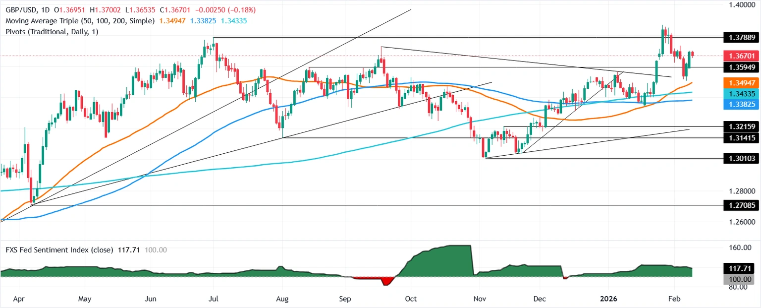 Прогноз по GBP/USD: снижение к поддержке девятидневной EMA около 1,3650