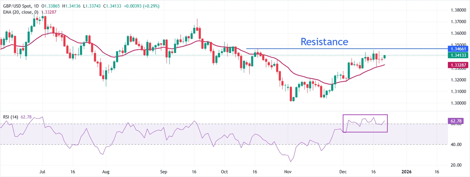 GBP/USD укрепляется около 1,3400 перед данными по ВВП Великобритании за 3 квартал