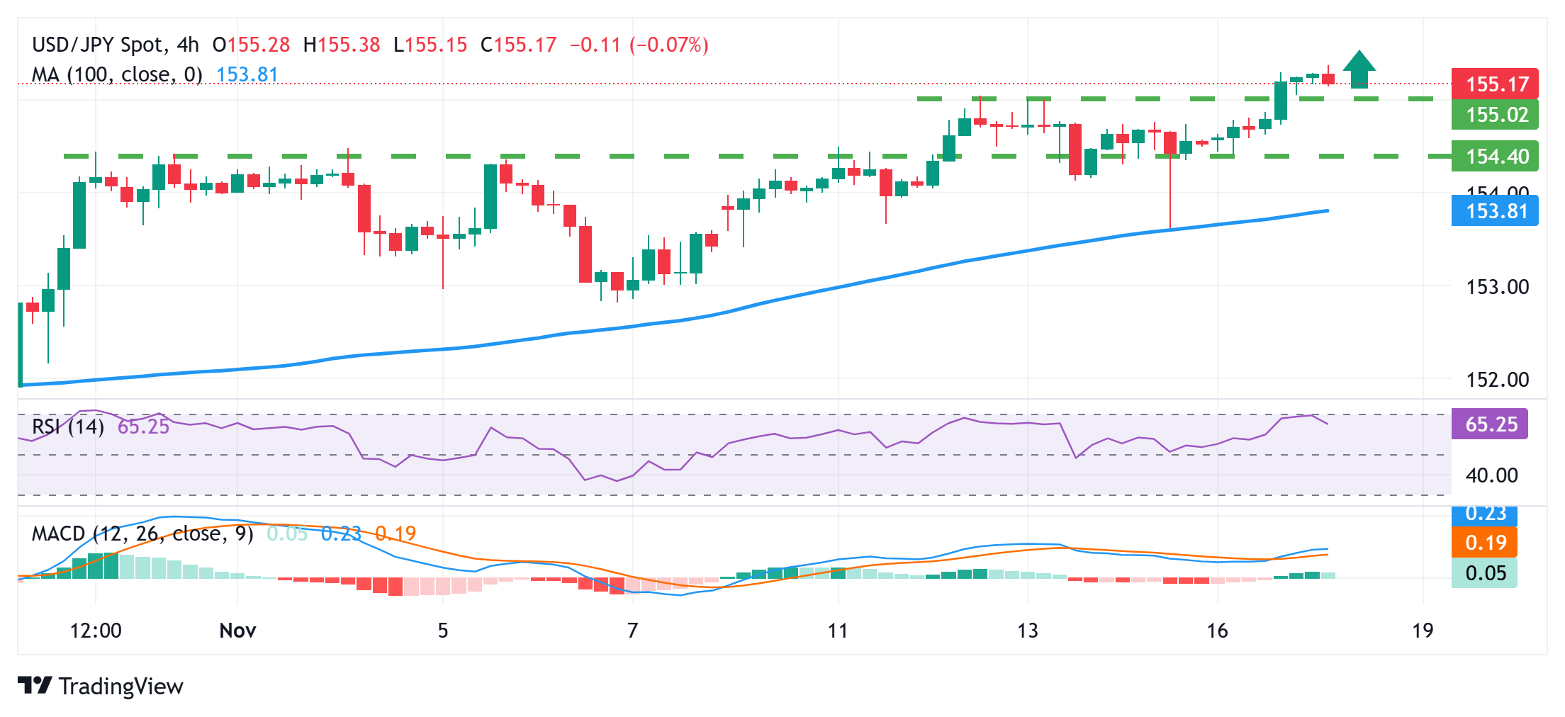 USD/JPY, похоже, готова к дальнейшему укреплению; прорыв через отметку 155,00 становится актуальным