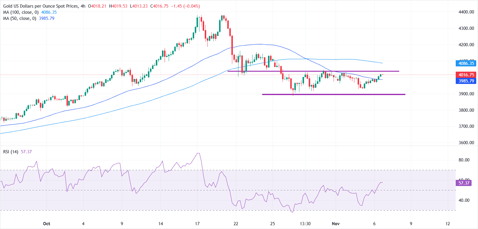 Технический анализ: XAU/USD стабилизируется выше $4 000, нацеливаясь на ключевое сопротивление $4 050